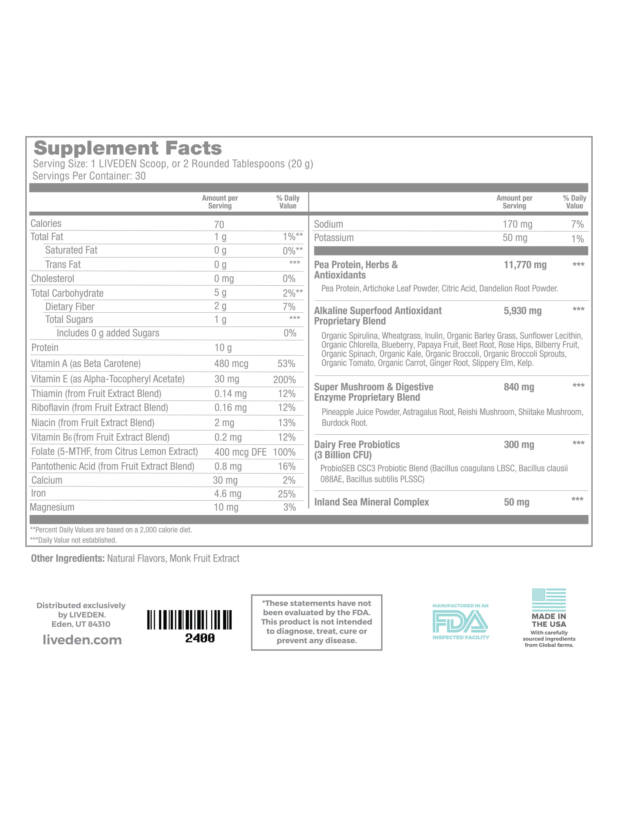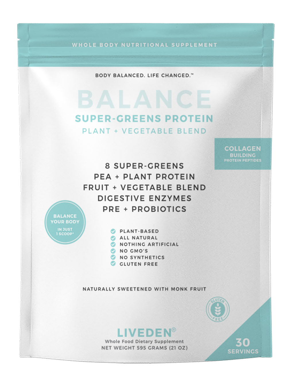 It's why we created LIVEDEN Superfood. A blend of over 60 powerhouse ingredients to help balance and stabilize the body, nourish the digestive tract, provide natural sustained energy, increased mental acuity, boost the immune system, and stop those cravings in their tracks.*